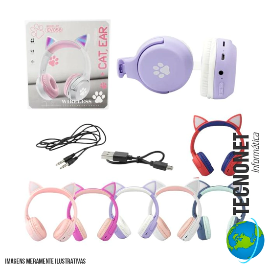 1 Headphone Cat Ear Wireless Com Led Colorido;